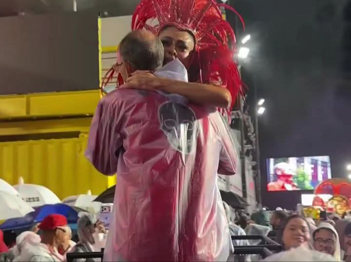 O grande destaque da noite foi o retorno emocionante de Juliana Paes ao posto de rainha de bateria, 17 anos depois. Em meio à avenida molhada, a atriz protagonizou uma cena de pura sensibilidade ao abraçar com carinho o mestre Ciça, traduzindo em gestos toda a conexão com o enredo e com a história da agremiação.
