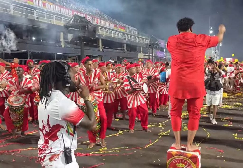 Sob o comando firme do mestre Paulinho Steves, a bateria contou ainda com a participação especial do mestre Vitinho, que deu um verdadeiro show à parte, elevando ainda mais o nível da apresentação. A sintonia, a energia e a potência dos ritmistas transformaram a avenida em um verdadeiro caldeirão de samba.