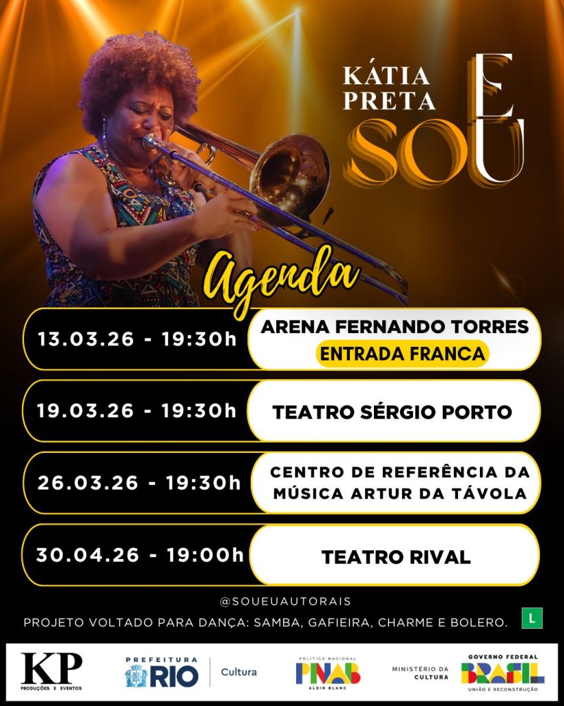 Além da excelência técnica, a sua carreira é pautada pelo ativismo cultural e pelo fortalecimento do protagonismo feminino. Kátia fundou a banda feminina Encanto na Folia, tricampeã dos concursos de bailes da Riotur, e a roda de samba Tem Preta na Roda, apadrinhada por ícones como Tia Surica. A sua atuação estende-se ao campo pedagógico, onde atua como mestre e inspiradora de novas gerações de mulheres instrumentistas em blocos e projetos sociais. Com o álbum “Sou Eu”, Kátia Preta deixa de ser a solista de suporte para assumir o protagonismo total da sua obra, reafirmando que o trombone, nas suas mãos, é uma extensão potente da sua voz e da sua ancestralidade negra.