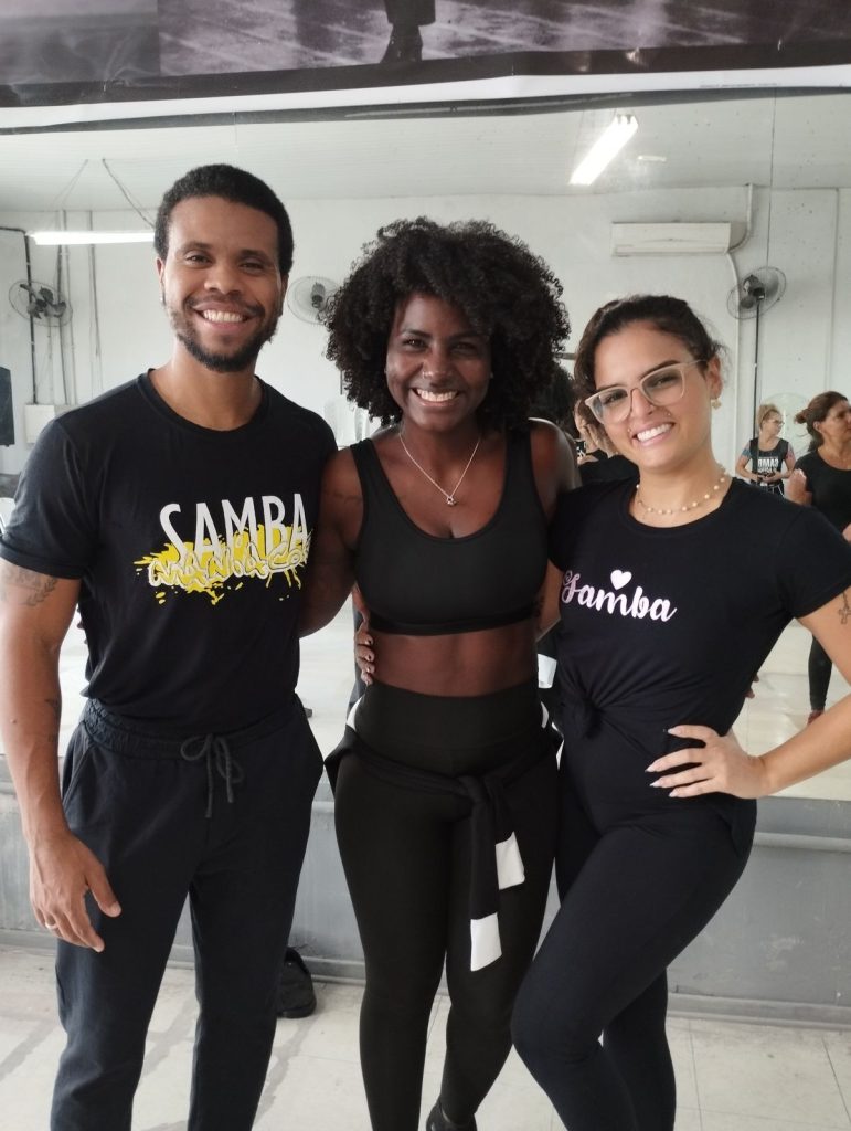 Com formação na dança de salão, ela destaca a importância da base técnica: “O samba no pé é raiz, mas quando você amplia seu repertório, sua dança cresce. A gafieira me trouxe consciência corporal e troca.”