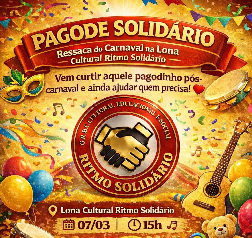 A Lona Cultural do Bloco Cultural e Social Ritmo Solidário será cenário de uma grande roda de samba, com muito charme e pagode, mostrando que a cultura também abraça, acolhe e transforma.